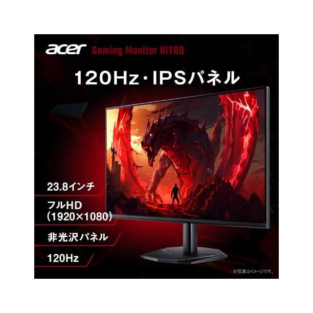 商品名:Acer ゲーミングモニター 23.8インチ IPS フルHD 非光沢 120Hz 1ms sRGB 99% Adaptive-Sync HDMI 1.4 DisplayPort v1.2 ミニD-Sub 15ピン スピーカー・ヘッドフォン端子非搭載 PS5 Xbox Series X|S Nitro KG241YGbip