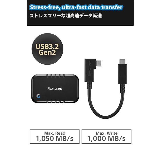 商品名:Nextorage 日本メーカー L字型ケーブル付属 SSD 外付け 2TB USB3.2 Gen2 ゲーミング・モバイル機器向けモデル NX-P2SE Gシリーズ Type-C 最大転送速度1050MB/s ポータブルゲーム機 Windows MacOS PS5 iPhone15/16 Pro iPhone15/16 Pro Max 動作確認済み NX-P2SE2TB/GLEB ネクストレージ