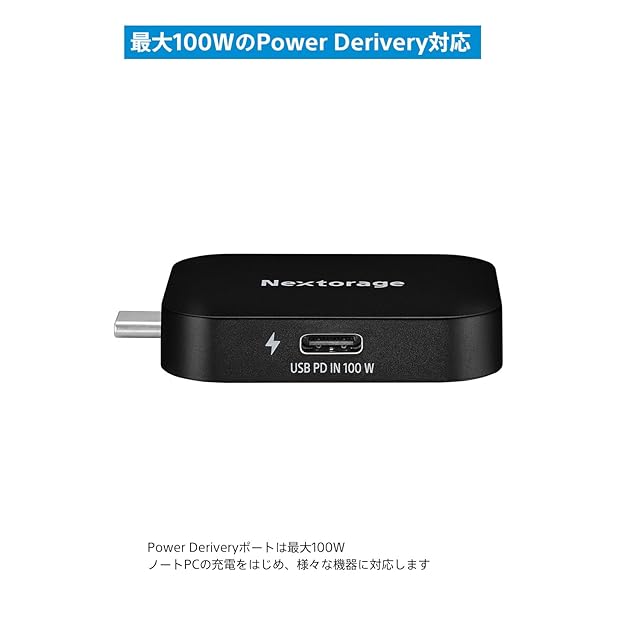 Nextorage PDPアダプター+ポータブルSSD 2TB 10Gbps セット PC・スマホを充電しながら4K動画をポータブルSSDへ録画可能 スマホの充電と映像・画像の転送を同時に行える “リバーシブル” USB-C PDパススルーアダプター PDPアダプター ネクストレージ NX-PDPA1 NX-P2SE