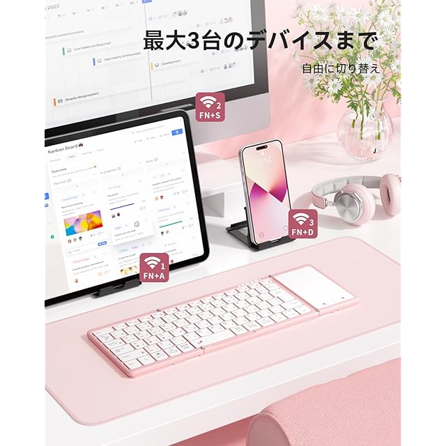 商品名:【最新型】Omikamo キーボード bluetooth 折り畳み式 ワイヤレス JIS標準日本語配列 ipad キーボード スマホ マルチペアリング タッチパッド付き iOS/Windows/Android/Mac/Google対応 無線 コンパクト 軽量 薄型 ipad mini パンタグラフ 充電式(ピンク)