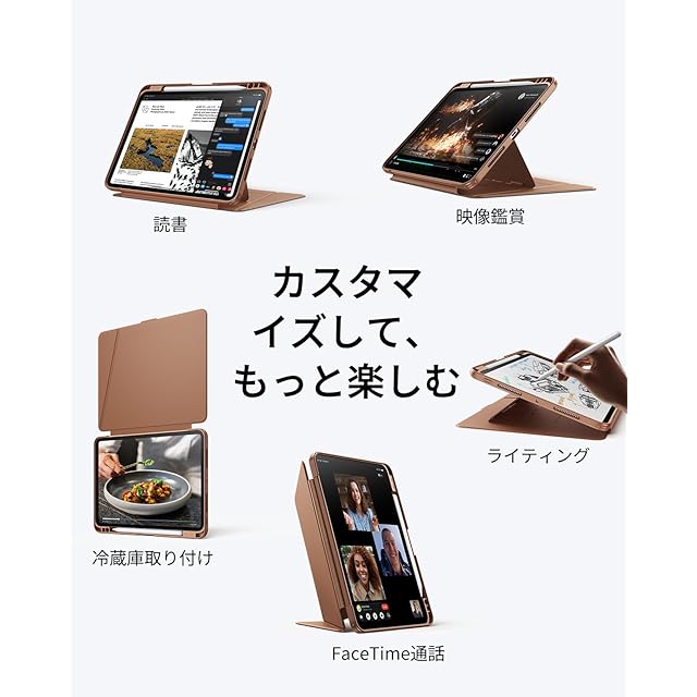 商品名:ESR iPad Pro 11インチ ケース(M5/M4、2025/2024)対応 ペン収納 耐衝撃 縦横スタンド 自動ウェイク/スリープ Pencil Pro/USB-C対応 マルチアングルケース Flipシリーズ ブラウン