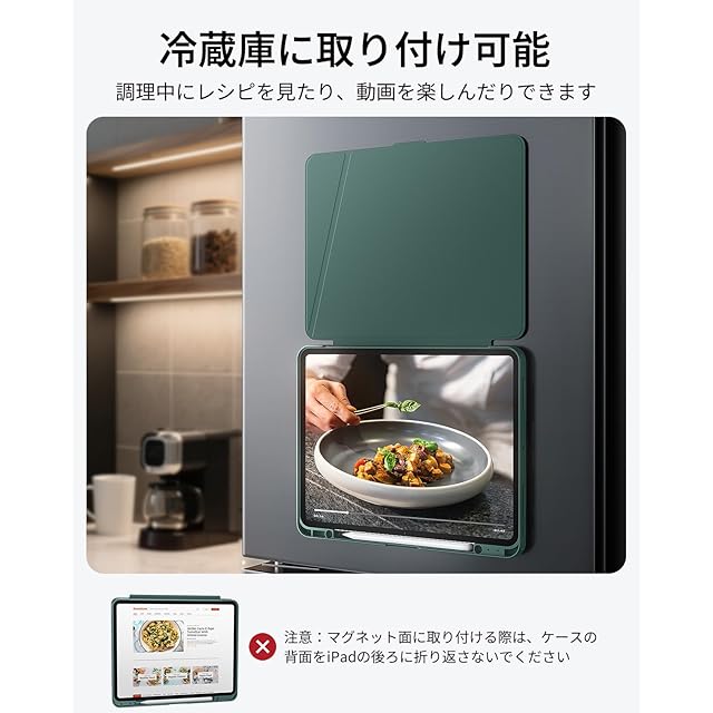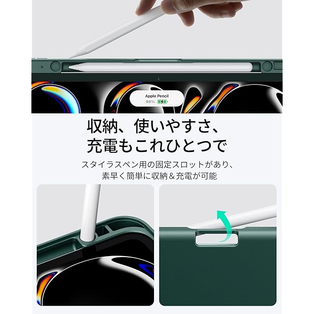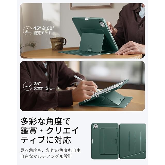 商品名:ESR iPad Pro 13インチ ケース(M5/M4、2025/2024)対応 ペン収納 耐衝撃 縦横スタンド 自動ウェイク/スリープ Pencil Pro/USB-C対応 マルチアングルケース Flipシリーズ グリーン