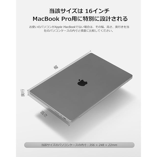 【ピッタリフィット】外寸:375×265×32mm、内寸:356×248×22mm。16インチ MacBook Pro M4/M3/M2/M1 Pro/Max 2024-2019 (モデルA3403 A3186 A2991 A2780 A2485 A2141)にピッタリ対応。15.6-16.0型 富士通 FMV Lifebook AHシリーズ 2024-2025発売モデル、15.6型 HP15、Lenovo ThinkPad E16 Gen 2、NEC LAVIE Direct N15 Slim モデルにも対応。対応型番の詳細は下記ページでご確認の上お買い上げください。他のラップトップに対応できるかのにお迷う場合、お気軽にお問い合わせください。