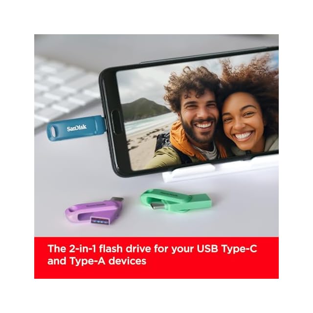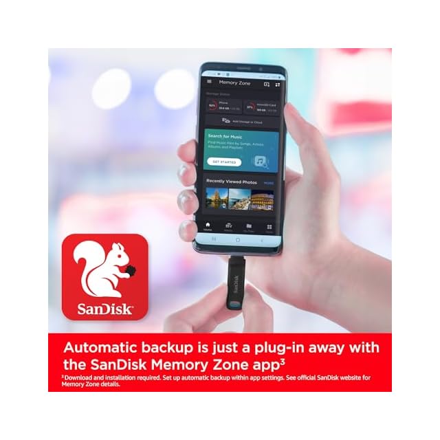 USB Type-Cスマートフォンのスペースを解放して、より多くの写真を撮ることができます(モバイルデバイスにはUSB Type-CポートとOn-The-Go(OTG)サポートが必要です。 互換性のあるデバイスのリストについては、SanDiskのウェブサイトをご覧ください。)