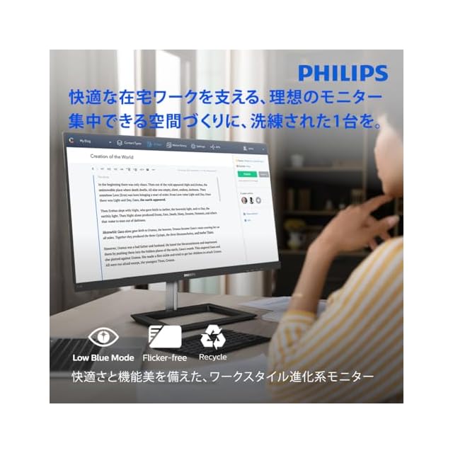 【仕事もゲームも、妥協のないパフォーマンス。AMD FreeSync テクノロジー対応】 ゲームをプレイするのに、動きがぎこちなかったり、映像が壊れていたのでは話になりません。この新しいフィリップスのモニターならそんな心配は不要です。AMD FreeSync テクノロジーと、スムーズですばやいリフレッシュ、超高速レスポンスタイムにより、事実上どのようなフレームレートでも滑らかでアーチファクトのないパフォーマンスを実現します。【環境に配慮した水銀フリー】 LED バックライト搭載フィリップスモニターは、人間と動物に対して極めて毒性が高い天然物質の 1 つである水銀を含みません。したがって、製造から廃棄までのライフサイクルを通して、環境にやさしいディスプレイです。