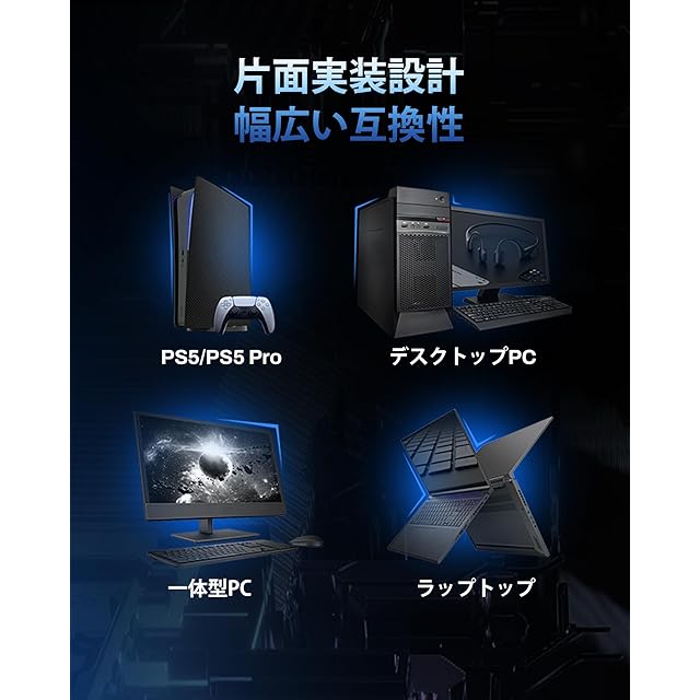 【PMIC電源管理&グラフェン放熱シート】本製品は複合電源IC(PMIC)を搭載し、電力分配の効率化により節電・省エネ性能が向上、SSDの耐久性が効果的に延ばされます。さらに、0.5㎜のグラフェン・アルミニウム製ヒートスプレッダーを装備し、優れた放熱性能で過熱を防ぎ、安定した最高パフォーマンスを維持可能。
