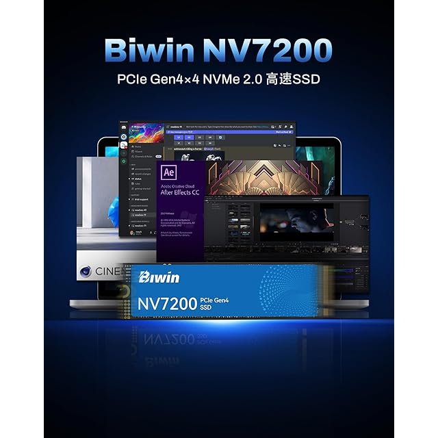 【Biwin NV7200】Biwin NV7200シリーズM.2 SSDは、最新のGen 4x4 NVMeコントローラと3D QLC NANDを搭載し、データの読み書き速度を飛躍的に向上させ、超高速かつ安定したパフォーマンスを実現します。ゲームやアプリケーションのロード時間短縮はもちろん、ストリーミングやキャプチャ作業でも、システム全体の応答性が大幅に強化されます。
