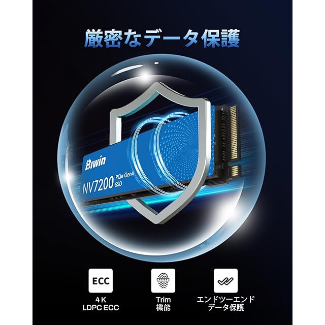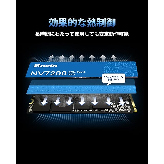 Biwin NV7200 4TB SSD NVMe2.0 M.2 Type 2280 PCIe Gen4×4 最大読込:7200MB/s (R:7200MB/s、W:6200MB/s) 内蔵SSD 高耐久 PS5/PS5 Pro動作確認済み メーカー5年