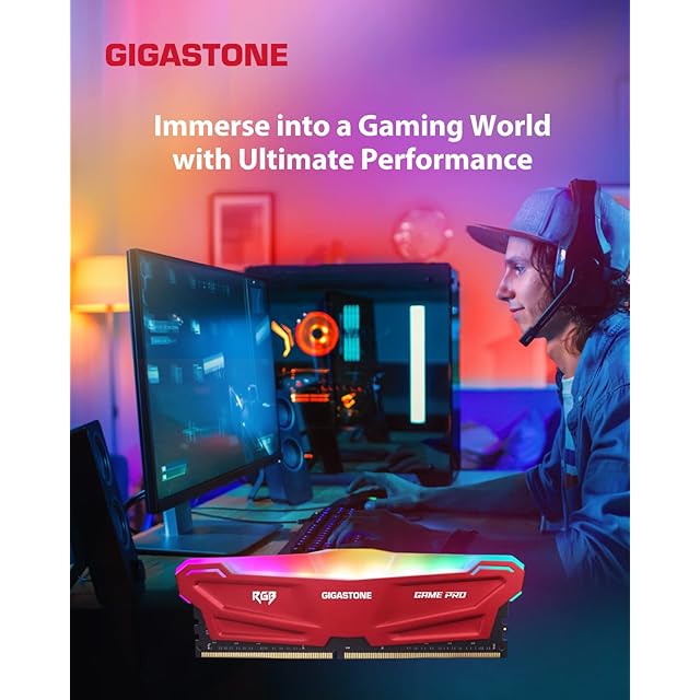 商品名:【発光型 DDR4】GIGASTONE Game PRO 8GBx2枚 (16GB Kit) DDR4 3200MHz PC4-25600 CL 16-20-20-40 Intel XMP 2.0 AMD Ryzen 1.35V UDIMM 288 ピン アンバッファー 非 ECC ゲーミング デスクトップ メモリ モジュール - 赤
