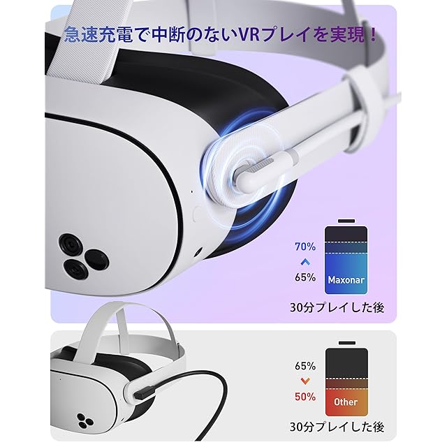 ★【最新の充電チップ】Maxonar Linkケーブルは、Quest 3S/3/2と互換性のある大幅にアップグレードされた内部充電ボードを備えた最新の18W充電ポートを備えており、ゲーム中にシームレスな充電体験を可能にします。最適な充電パフォーマンスを得るには、公式以上の高出力充電器を使用することをお勧めします。このケーブルを携帯電話、タブレット、ノートパソコンの充電には使用しないでください。