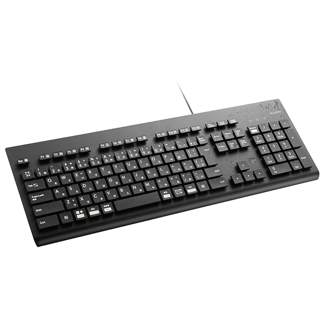 キーの隙間にたまったホコリを、丸洗いで簡単に除去可能。不意の水濡れでも心配ない、防水タイプの有線キーボードです。