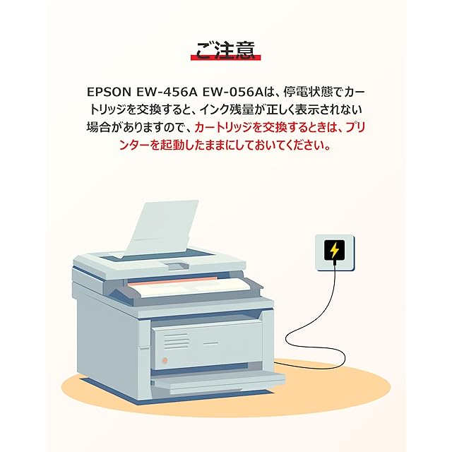 ★【ポイント】EPSON EW-456A EW-056Aは、停電状態でカートリッジを交換すると、インク残量が正しく表示されない場合がありますので、カートリッジを交換するときは、プリンターを起動したままにしておいてください。