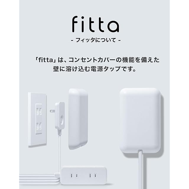 【壁にとけこむ 電源タップ 】パッと取り付けて生活感をなくす!薄型コンセントカバー付き電源タップ fitta (フィッタ)。ご家庭はもちろん、オフィスや店舗などあらゆるシーンのコンセント周りをスッキリ美しく。