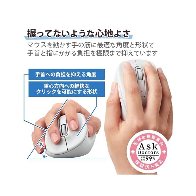 商品名:エレコム マウス ワイヤレスマウス EX-G 無線2.4GHz 静音 Lサイズ 5ボタン 「AskDoctors評価サービス」認証 抗菌 ホワイト M-XGL30DBSKWH