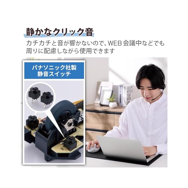 左右ボタンには、パナソニック株式会社が開発した静音スイッチを採用。クリック感と耐久性を損なわず、高い静音性を実現しました。