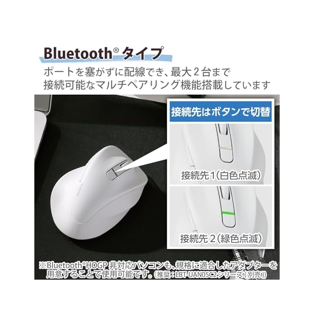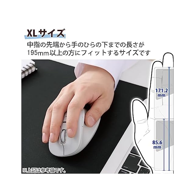 商品名:エレコム マウス ワイヤレスマウス EX-G Bluetooth 静音 XLサイズ 5ボタン マルチペアリング 「AskDoctors評価サービス」認証 抗菌 ホワイト M-XGXL30BBSKWH