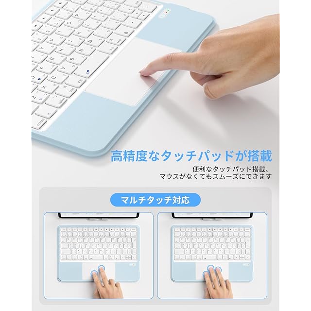 【業界革新なJIS標準日本語配列&精度が高いタッチパッド搭載】キーボードは使い慣れたJIS規格準拠の標準日本語配列を採用し、大型の「Enter」キーを搭載し、「Delete」などの特殊キーがまとめて配置されてよりスムーズな入力が可能になります。また、ipad キーボードは高精度なタッチパッドが搭載されていて、マウスがなくてもカーソル移動がスムーズにできます。