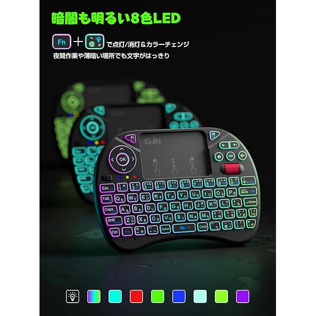 Ewin【アップルモデル専用】超薄型ミニキーボード 日本語配列 タッチパッド内蔵 Bluetooth/2.4GHzデュアル接続 8色バックライト iPhone/iPad/Mac対応 ポータブル type-C充電式 USB-C転送アダプター付属
