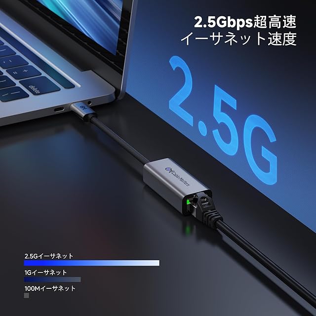 商品名:Cable Matters USB-C 2.5G LAN変換アダプター [最大2500Mbps高速有線LANアダプター 2.5Gbps - USB4 / Thunderbolt 4/5互換 - MacBook・PC・USB-C機器向け プラグアンドプレイ対応