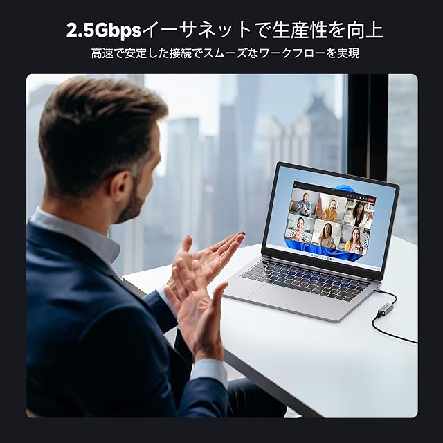 超高速有線LANアダプター 2.5Gbps :このUSB C 有線LANアダプター(USB C LAN変換アダプター)を使用することで、最大2500Mbpsのイーサネット速度を実現。UHD / 8K / 4Kストリーミング、オンラインゲーム、大容量ファイルの転送にも最適で、低速ネットワークによるボトルネックを解消します。滑らかで応答性の高いインターネット体験を提供します。