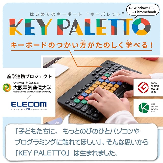 商品名:エレコム ワイヤレスキーボード Bluetooth 子供用 パソコン学習用 プログラミング KEY PALETTO キーパレット 大阪電気通信大学 兼宗進副学長監修 Windows・ChromeOS用 抗菌 よみがなシール付 ブラック TK-FS10BMKBK