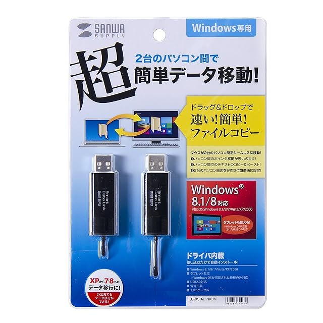 商品名:サンワサプライ ドラッグ&ドロップ対応USB2.0リンクケーブル 1.8m KB-USB-LINK3K
