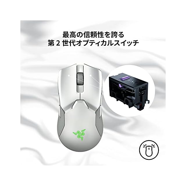 商品名:Razer ゲーミングマウス Viper Ultimate Mercury White 高速無線 軽量 74g Focus+センサー 20000DPI 光学スイッチ 8ボタン 充電スタンド付 Chroma【日本正規代理店品】RZ01-03050400-R3M1