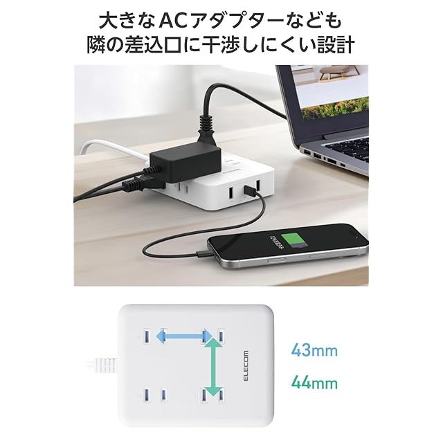 ACタップとUSBポートが一体になった、スマートフォンとワイヤレスイヤホンなどを同時に充電できるUSB付きコードタップです。デスク周りのコンセントを一つにまとめてスッキリと整理できます。