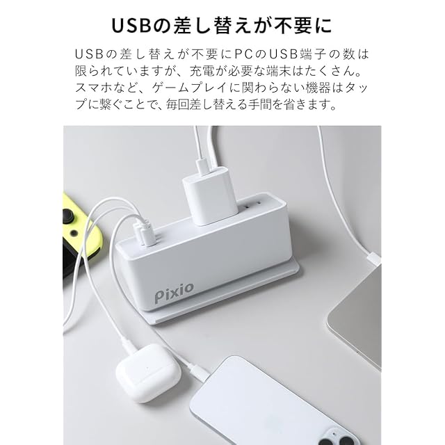 Pixio AC&USB TAP COMPACT White 電源タップ ホワイト 卓上 コンセント USB Type-C Type-A 充電ステーション ACアダプタ 急速充電 コンパクト スマホ スタンド機能 延長コード USB充電器 おしゃれ デスク インテリア ゲーミング