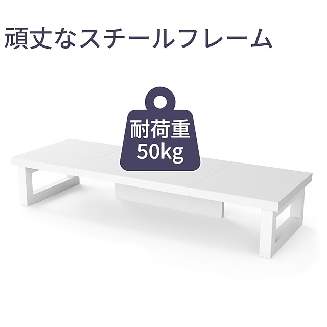 【デスク広々!2画面OK】このモニター台は、天板スペースを有効活用し、広々とした作業環境を実現します。ノートパソコンとモニターを並べて置いたり、デュアルモニター環境を構築したりするのにも十分な広さを確保。資料を広げながらの作業も快適になり、仕事や勉強の効率が格段にアップします。
