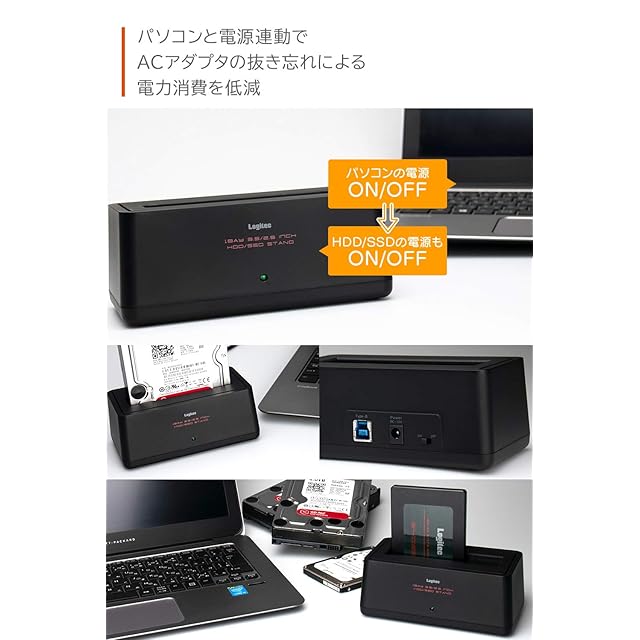 【電源連動】パソコンと電源連動でACアダプターの抜き忘れによる電力消費を低減します。※お使いのパソコン・HDD/SSDによっては、スリープ状態で一部連動しない場合があります。
