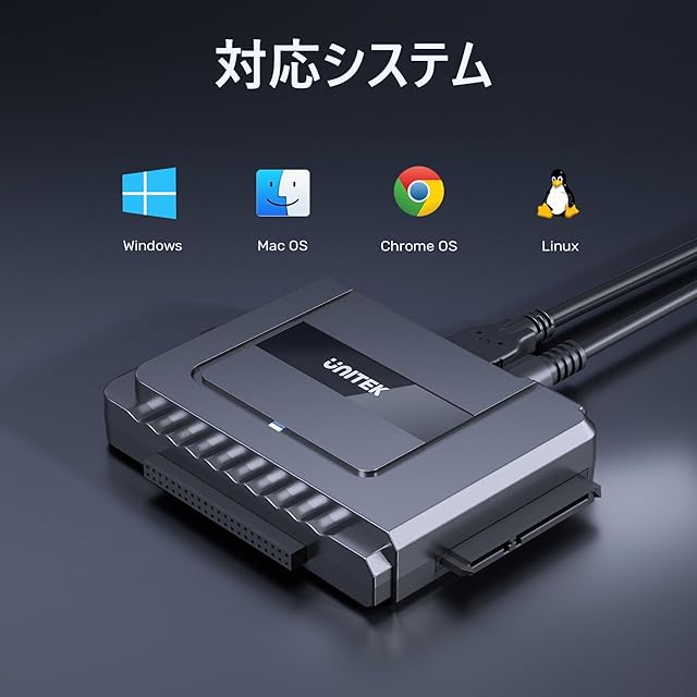 Unitek USB-A IDE/SATAアダプター<br>-2つのIDEコネクタ(40ピンおよび44ピン)+ SATA IIコネクタ<br><br>-サポート:2.5 "/3.5" SATA HDDおよびSSD<br>2.5 "/3.5" IDE HDD<br>DVD-ROM、CD-ROM、CD-RW、DVD-RW、DVD + RW<br><br>-オペレーティングシステム:Windows XP / Vista / 7; Mac OS 10.Xおよびwin8(OTBはサポートしていません)<br>-貴重なデータを効果的に保護するワンクリックバックアップ機能。<br>モバイルPCと据え置きPCの両方の幅広いユーザー向けの便利でシンプルで実用的なデータアクセスおよびストレージ変換ソリューション<br>-最大4 TBの容量のドライブ、LEDアクティビティインジケータ、プラグアンドプレイ、シンプルで信頼性が高く安定したドライブをサポート<br>-HDD保護のためのオン/オフスイッチ、使用していないときはオフにすることができ、簡単で簡単な操作で、効率的にデバイスの寿命を延ばします<br><br>Unitekバッケージ内容<br>-IDE・SATA両方対応USBドライブ交換アダプターx1<br>-USB-Aデータケーブルx1<br>-OTBソフトウェアCDx1<br>-IDE対応4PIN電源ケーブルx1<br>-12V 2A電源アダプターx1<br>-取扱説明書x1<br><br>ご注意:<br>1. CDドライバーはワンタッチバックアップ用にのみインストールされ、Windows 10以降、Mac OSを使用できません。 <br>2.安定した電力を確保するために、コンバーターの使用中に電源を接続してください。 <br>3. SATAおよびIDEコンバーターは、2つのIDE HDDをサポートせず、同時に1つのIDEおよび1つのSATA HDDのみをサポートします。