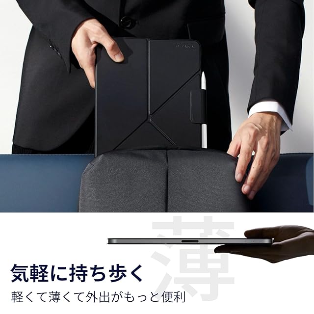 商品名:PITAKA iPad mini7 ケース(A17 Pro, 2024, 第7世代) iPad mini6 ケース (2021, 第6世代) 8.3インチ 横置&縦置 タブレットスタンド 磁気吸着 超スリム 軽量 極薄 衝撃保護 折りたたみ 角度調整可能 三角形の構造 安定感 iPad スタンド MagEZ Folio 2 ブラック