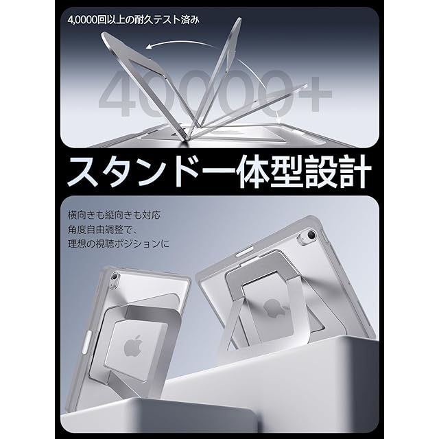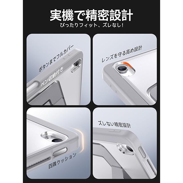 商品名:【米軍MIL規格・縦置き/横置きスタンド】iPad A16 ケース 第11世代(2025)/第10世代(2022)対応 専用カバー アルミ調節式 縦横スタンド ペンシルホルダー付き 薄型 軽量 耐衝撃 半透明カバー (グレー)
