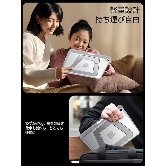 【スタイリッシュで持ち運びやすいデザイン】iPad A16用ケースの背面には、高品質な半透明マット素材を使用しており、なめらかな手触りが特長です。長く使っても色あせや剥がれが起きにくく、レザーケースのような剥がれを気にせずお使いいただけます。また、薄型でフロントカバーなしのシンプルな設計なので、スマートフォンのように軽く持ち運べて日常使いに便利です。自由で軽やかな使い心地と上品なスタイルをお楽しみいただけます。