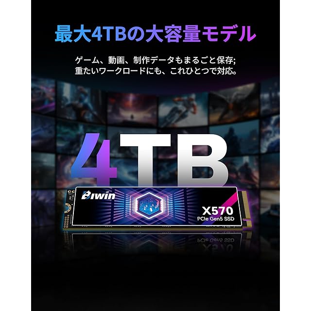 商品名:Biwin X570 PCIe Gen5.0 M.2 SSD 4TB Gen5×4 最大読込:14500MB/s NVMe2.0 M.2 Type 2280 PCIe 片面実装 内蔵SSD 低消費電力 TLC 高耐久 メーカー5年
