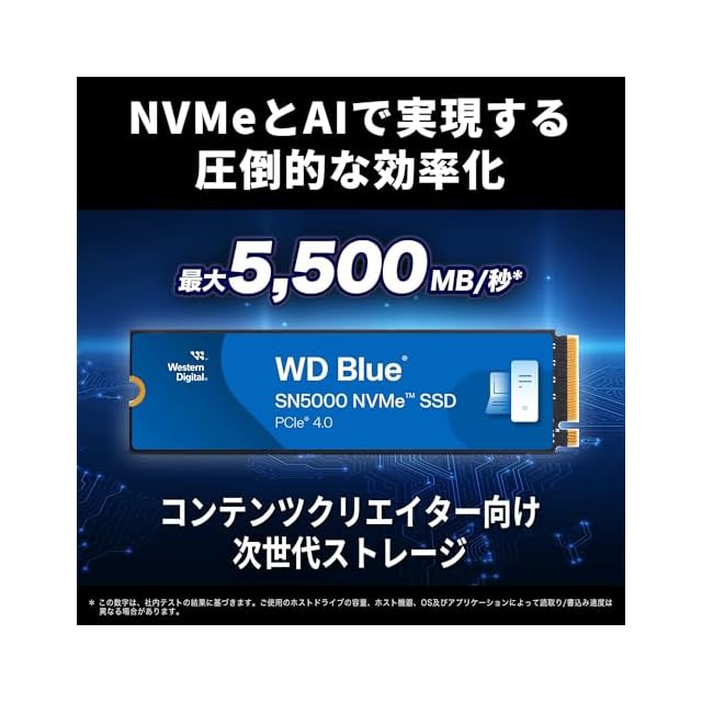 商品名:Western Digital ウエスタンデジタル 内蔵SSD 4TB WD Blue SN5000 (読取り最大 5,500MB/秒) M.2-2280 NVMe WDS400T4B0E-EC 【国内正規代理店品】
