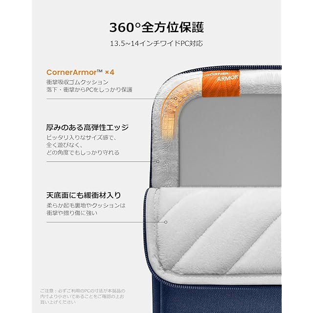 商品名:tomtoc 360°保護 13.5-14インチ パソコンケース Surface NEC Lavie Dell HP Lenovo 富士通 Dynabook Asus Chrombook ワイドPC対応 スリーブ ノートPCケース インナーバッグ 耐衝撃 撥水加工 軽量 ネイビー