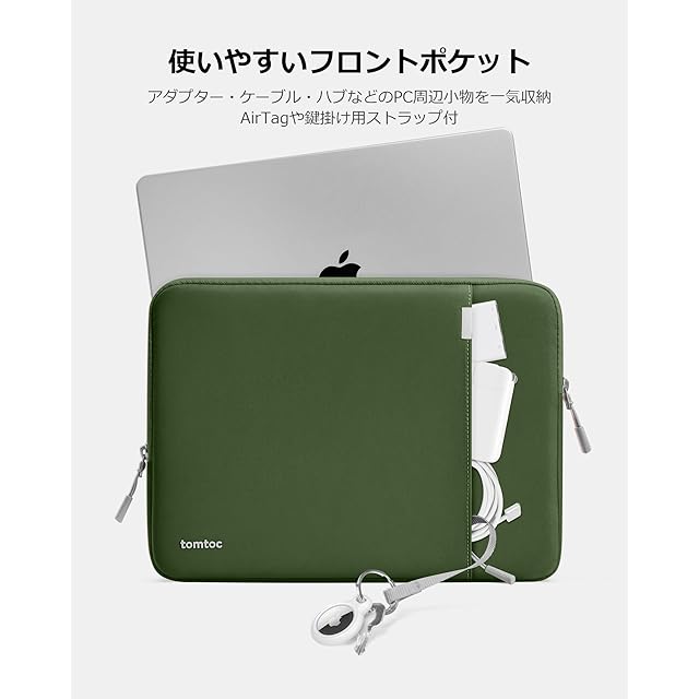 【便利なフロントポケット】フロントポケットはKindle、アダプター、ケーブル、バウス、ハブ、USBメモリ、イヤホンなどのPC周辺小物を一気に収納できます。AirTagや鍵掛け用ストラップ付。この軽量でコンパクトなラップトップ保護ケースは他のショルダーバッグ、バックパックに簡単に収納できます。