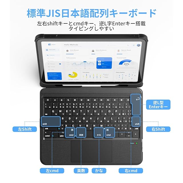 ✅【業界革新JIS標準日本語配列】ipad air 11インチ ケース キーボード はJIS規格準拠の日本語配列を採用し、逆L型Enterキー、左右shiftキー、左右cmdキー搭載、より快適にタイピングできます。また、キーが静音性に優れた素材を採用し、静音性を70%アップしました。安静なカフェや図書館などでも周囲を気にせず利用できます。