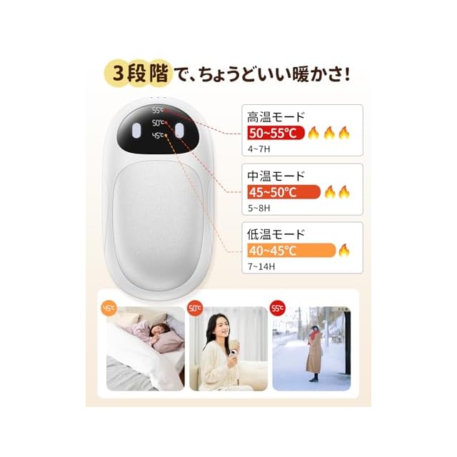 ✅【2025年日本初上陸!圧倒的コスパ!新世代充電式カイロ】もう使い捨てカイロに頼る必要はありません。1日限りで捨ててしまうと、3ヶ月で約3,600円のコストに…。HAGOOGIの充電式カイロなら、1回の充電は約1.26円、3ヶ月使っても300円未満。さらに、温度調節機能付きでシーンに合わせて快適に。充電すればくり返し使えるから、ゴミも出さずスマートに冬を楽しめます。お財布にも地球にもやさしい、この冬はもう手放せない!