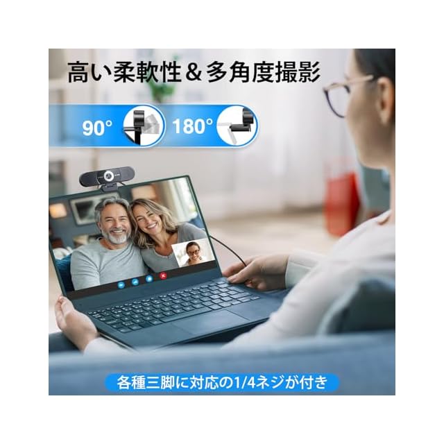 【フレキシブルなデザイン&低消費電力】 この4K webカメラは、前方に90°の調整可能なスタンドを備え、標準の1/4インチネジで三脚にスムーズに取り付けられます。そのため、幅広い撮影環境で安定した撮影が可能です。また、低消費電力のデザインを採用し、カメラ、マイク、スピーカーの機能を統合しながらも高いエネルギー効率を実現し、多様なシーンでの使用に適しています。