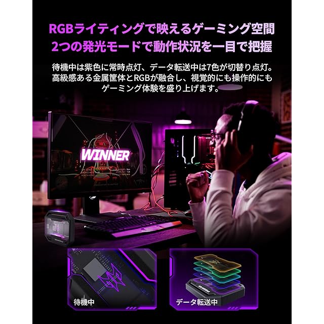 【金属筐体・RGBライティング】アルミ合金の堅牢なボディが高級感と優れた放熱性を実現。個性的なRGB LED設計で自分なりのゲーミング雰囲気を作りましょう。