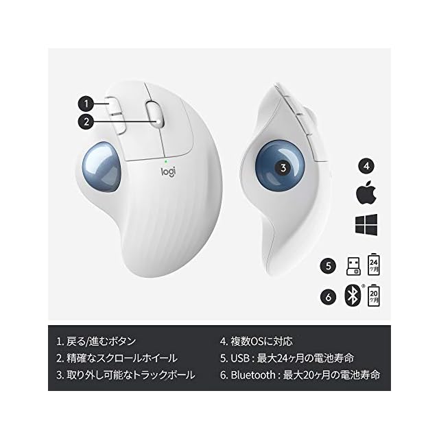 商品名:ロジクール ワイヤレスマウス トラックボール 無線 M575OW Bluetooth Unifying 5ボタン windows mac iPad 電池寿命最大24ケ月 M575 オフホワイト 国内正規品