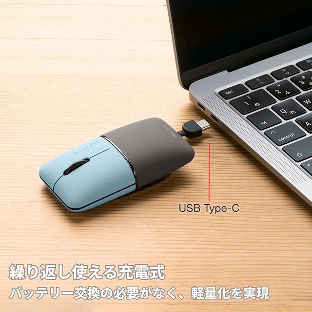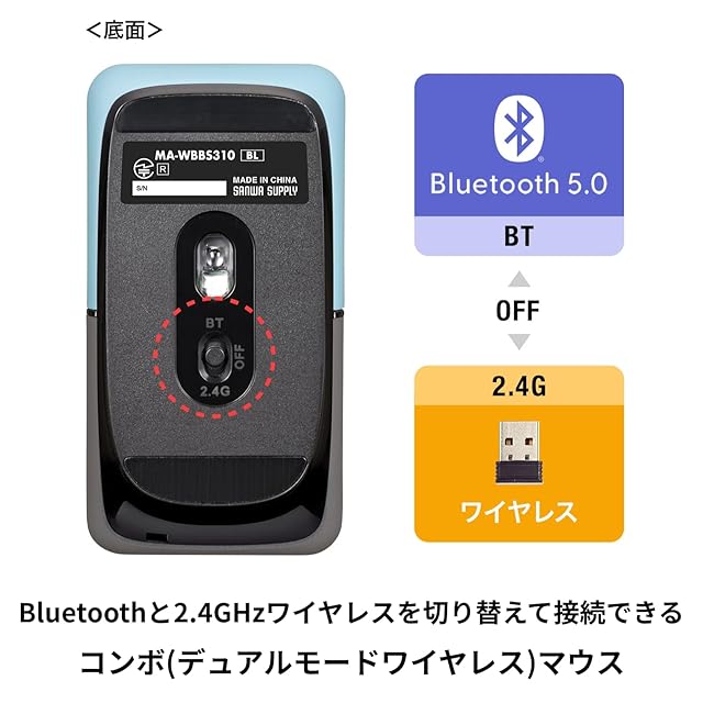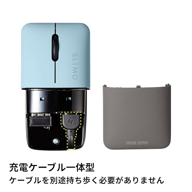 商品名:サンワサプライ モバイルマウス Bluetooth/ワイヤレス(USB A)接続 コンボ(デュアルモード)タイプ 充電式 薄型・コンパクト ブルー SLIMOシリーズ MA-WBBS310BL