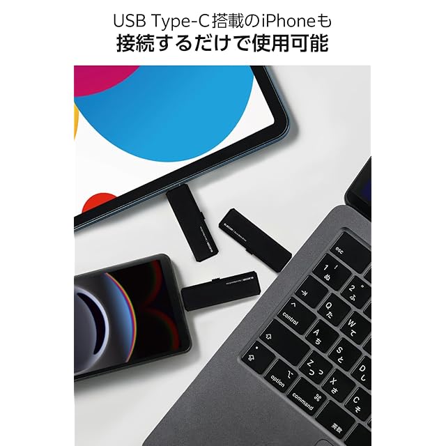 従来のUSB-Aポート搭載パソコンはもちろん、USB Type-Cポートを搭載したMacやiPhone、iPadなどでも、ケーブルやアダプターを別途購入することなく、接続するだけですぐに使用可能です。