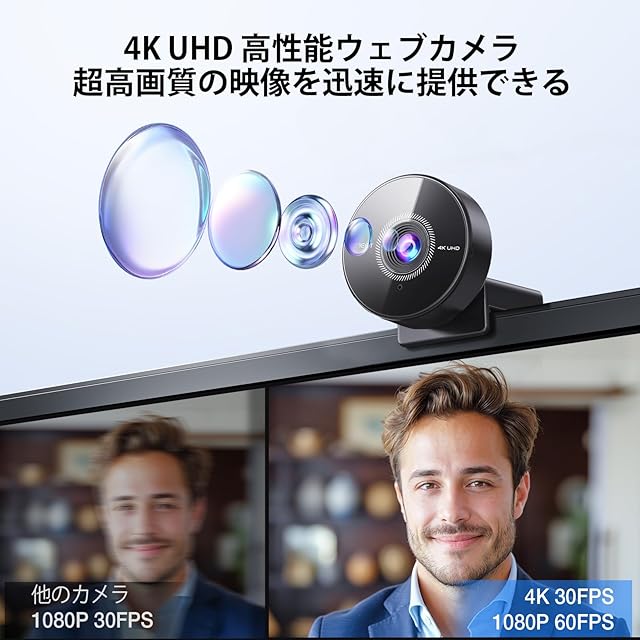 【プラグ&プレイ、幅広い互換性】この小型4K webカメラはドライバーや複雑な設定が一切不要で、USBケーブルを接続するだけですぐに使用できます。Zoom、Skype、Microsoft Teams、Google Meet、Line、YouTube Live、Twitch、ニコニコ生放送、ABEMA、Google Hangoutなどと互換性があり、安定した高品質な通話を提供します。Windows(Win7、10、11)およびmacOS(10.10以降)に対応し、USBビデオデバイスクラス(UVC)モードでシームレスに動作します。