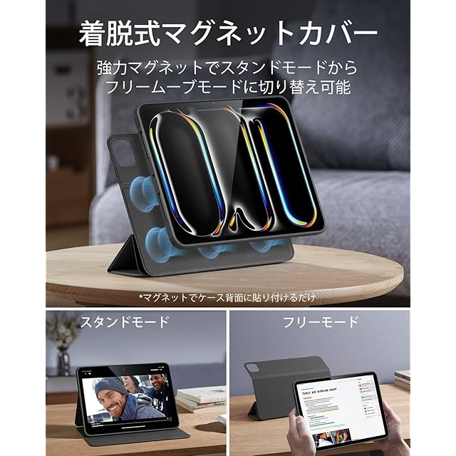【対応機種】:iPad Pro 11インチ(M5/M4)2025/2024年に対応。モデル番号:A3357、A3358、A3359、A2836、A2837、A3006。ご注意:iPad Pro 11インチ(2022/2021/2020/2018、第4/3/2/1世代)と他のiPadモデルには非対応です