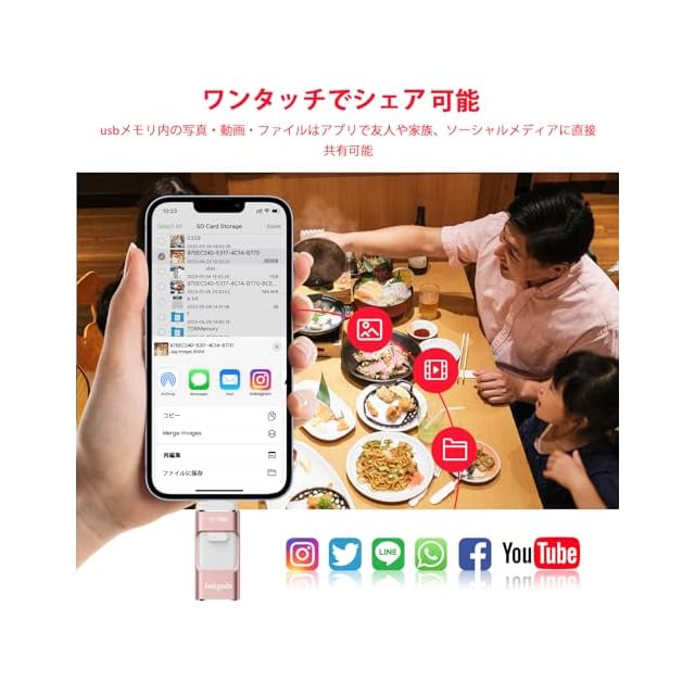 【多機種対応】 USBメモリ にはiOS、USB、type-c、micro USBの機種の接続タイプが4種も使用出来るので、PC/Android/MacBook/iOSで簡単にデータ バックアップです。 usbメモリはPhone 15 Pro Max/15 Pro/15 Plus/15/14 Pro Max/14 Pro/14 Plus/14/SE 3/13 Pro Max/13 Pro /13/13 mini /12 Pro Max/12 Pro/12 /SE 2 /11 Pro Max/11 Pro/11 /XR/XS Max/XS /X /8 Plus/8/i Pad Air(第1/2/3世代)/ MacBook(Pro/Air)/iPad mini(第1/2/3/4/5世代)/i Pad(第5/6/7/8/9世代)全シリーズ/ パソコン/ Type-Cスマホ/ Androidスマホ /タブレットなどとデータ移行 互換性のあるusbメモリ。