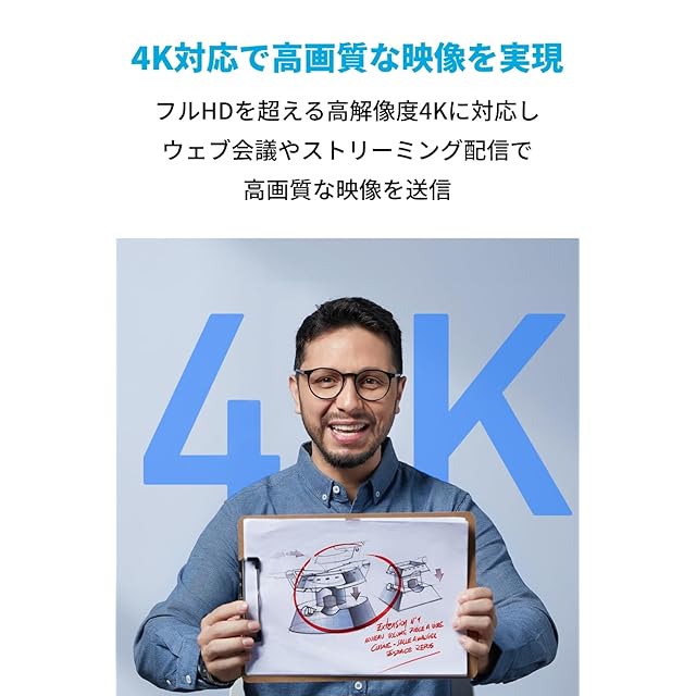 1200万画素4K対応の高解像度:フルHDの4倍の高解像度4Kに対応し、ウェブ会議やストリーミング配信で高画質な映像を送信可能です。<br>なめらかで鮮明な映像を実現:1080p (60FPS) HDRに対応し逆光や暗い環境でも、明暗を自動調整し細部まで鮮明に撮影することが可能。<br>AI機能で映像と音声を最適化:AIによるオートフォーカス、オートフレーム、ノイズキャンセリング機能を搭載しており、リアルタイムで音声と映像を最適化します。<br>プライバシーカバー搭載:カメラを使用しないときはレンズを物理的にカバーすることができるプライバシーカバーを搭載しているため、不要な映り込みを防ぐことができます。
